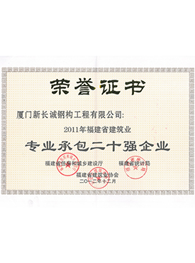 2011年福建省建筑業(yè)專業(yè)承包二十強(qiáng)企業(yè)證書(shū)
