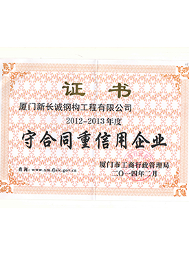 2012-2013年度守合同重信用企業(yè)證書(shū)