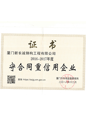 2016-2017年度守合同重信用企業(yè)證書(shū)