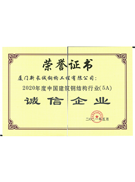 2020年度中國(guó)建筑鋼結(jié)構(gòu)行業(yè)(5A)誠(chéng)信企業(yè)-榮譽(yù)證書(shū)