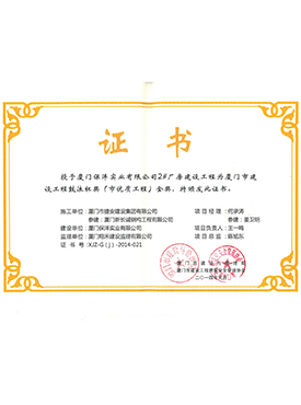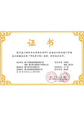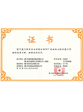 保灃1號(hào)廠房建設(shè)工程廈門(mén)市結(jié)構(gòu)優(yōu)質(zhì)工程證書(shū)